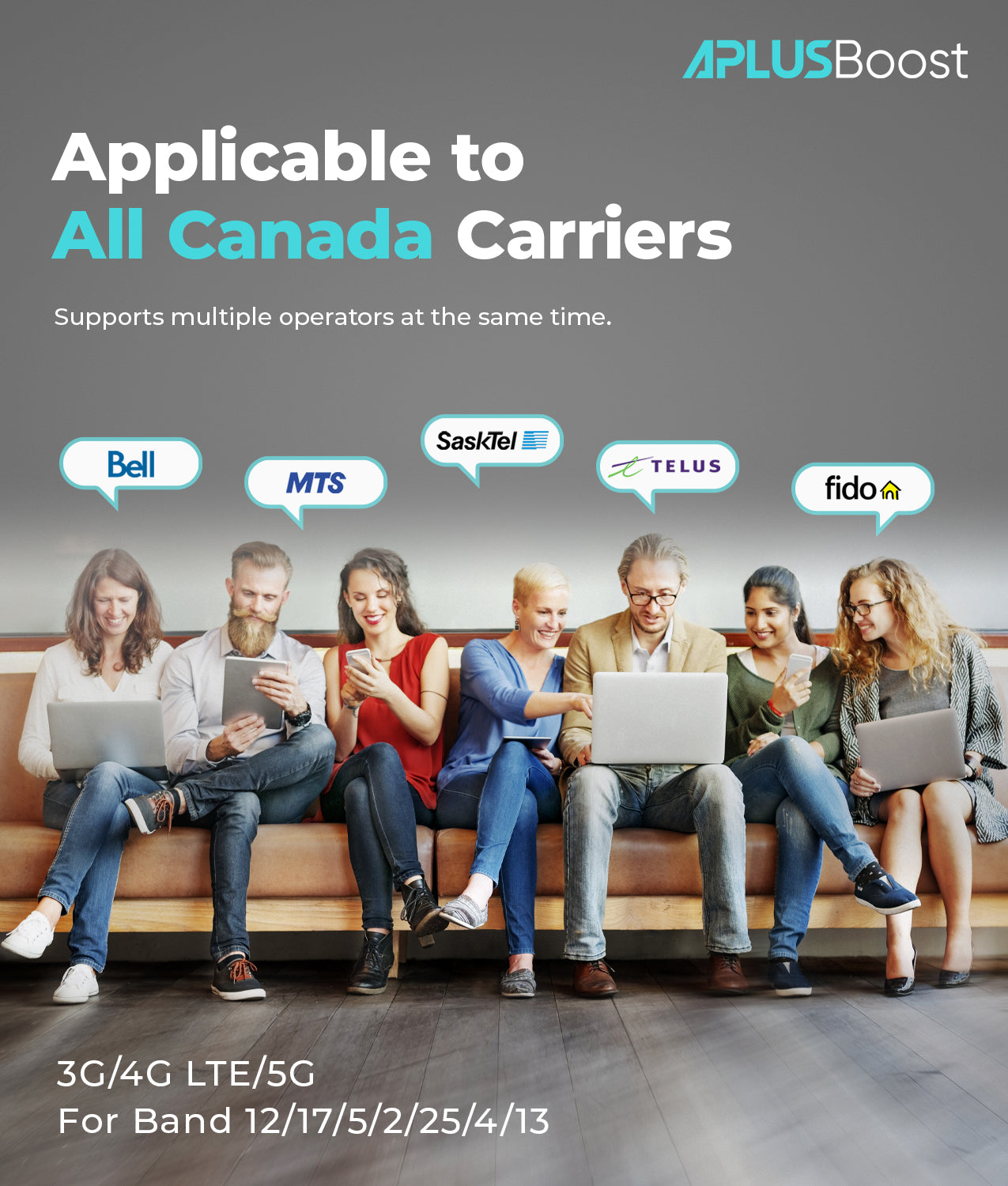 【CARRIER AND 5G COMPATIBLE】This cell booster supports all Canada carriers and boosts 4G LTE and 5G signal for cellular devices, including Bell, Telus, Rogers, Fido, etc. It works seamlessly in 5G to provide the best cell signal on bands 12/17/5/2/25/4/13. Our cell signal booster won't interrupt or harm any carriers' signal to and from the cell tower.