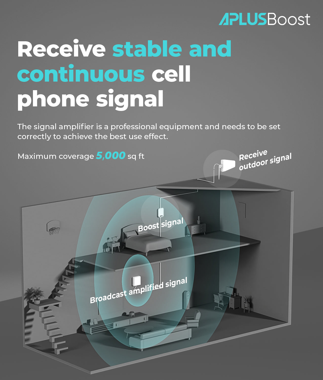【FCC APPROVED 】APlusBoost signal booster comes with a smart feature of ALC (Automatic Gain Control). In addition to intelligently detecting the existing signal strength and automatically adjusting itself for best performance. When booster isn't used for a long time, booster will turn into standby mode automatically, to extend the life of booster.