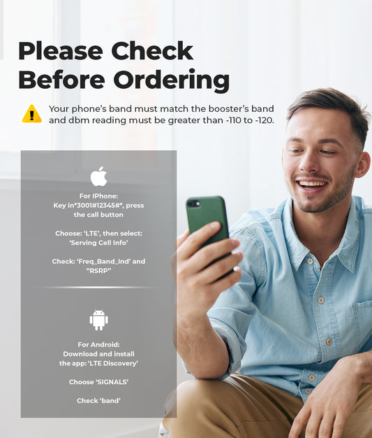 You can check your outdoor dbm value before buying. If it is less than -120dbm, then the amplifier will not be able to receive signals from the cell tower and will not function properly.